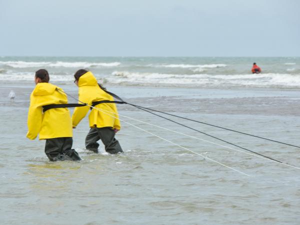 Bij actieve strandvisserij worden netten geduwd of getrokken door een visser of het paard. In tegenstelling tot de passieve visserij, wordt er wel degelijk directe actie verwacht van de visser tijdens de vangst. We bespreken hier zowel de kruiers met een steek- als een sleepnet, en de garnaalvissers te paard. Ook de hengelaars en de aasdelvers horen in deze rubriek thuis.