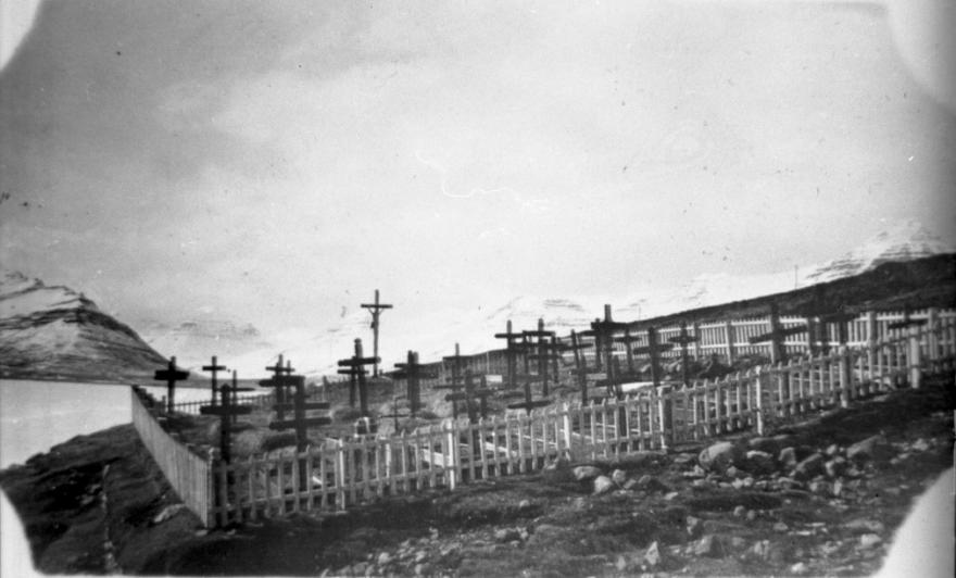 De begraafplaats voor Franse zeelieden in Fáskrúðsfjörður, toen en nu. Eind mei ging een Koksijdse museumdelegatie de IJslandvaarders achterna. Over land volgden we hun sporen, tot aan de baai van Fáskrúðsfjörður. Daar brachten we niet enkel hulde aan Charles Haelewyck, wiens graf hier te zien is, maar aan alle Vlaamse vissers die een laatste rustplaats vonden op IJsland.