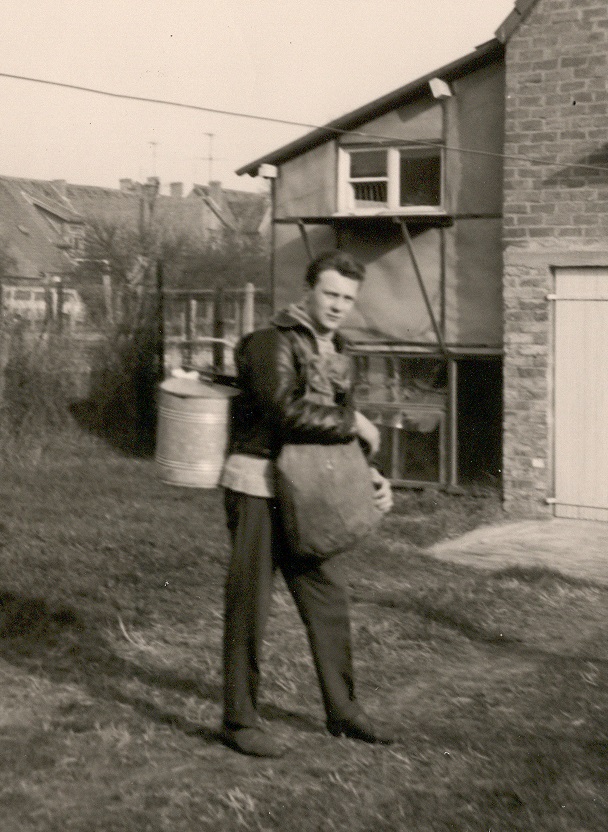 Een jonge Marc Dezutter, klaar voor een zeereis en uitgerust met ‘plunjezak’ en ‘panger’ (Fotocollectie NAVIGO-museum).