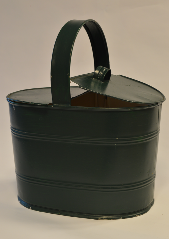 Op zijn rug droeg Marc Dezutter dat andere onmisbare accessoire voor een visser die een zeereis aanvatte: een ‘panger’. Of is het nu ‘paander’, ‘pander’, ‘panjer’ of ‘pangel’? De synoniemen zijn talrijk en verschillen van streek tot streek, maar stammen allemaal af van het Latijnse ‘panarium’, dat broodmand betekent. Binnen de visserij verwijst het woord naar de ronde of ovalen mand met 2 deksels en een hengsel waarin de vissers hun persoonlijke mondvoorraad meenamen en bewaarden op het schip. In vroege tijden werd deze ‘panger’ gevlochten met jonge wilgentakken, maar in de loop van de 20ste eeuw werd de houten versie vervangen door een metalen, verzinkte emmer zoals het voorbeeld op de foto. De grootte én de inhoud van een ‘panger’ varieerde van visser tot visser en naargelang de duur van de tocht, maar onder andere hompen kaas, vleeswaren, boter, suiker, eieren, brood, chocolade, thee en koffie behoorden tot de etenswaren die vaak in de ‘panger’ mee aan boord gebracht werden. Op de terugreis werd de lege trommel opnieuw gevuld, ditmaal met dat gedeelte van de vangst waar de visser, naast zijn loon, recht op had. Deze zogenaamde ‘deelvis’ werd naar analogie met de container waarin het vervoerd werd ook ‘panger’ (of één van de andere synoniemen) genoemd. De deelvis kon door de visser en zijn familie zelf genuttigd worden, maar heel vaak werd het (deels) verkocht aan buren, familie of vrienden. Met het zakgeld van deze transacties trokken de vissers vervolgens graag richting café, om daar met een biertje te klinken op een goede afloop van de vaart.